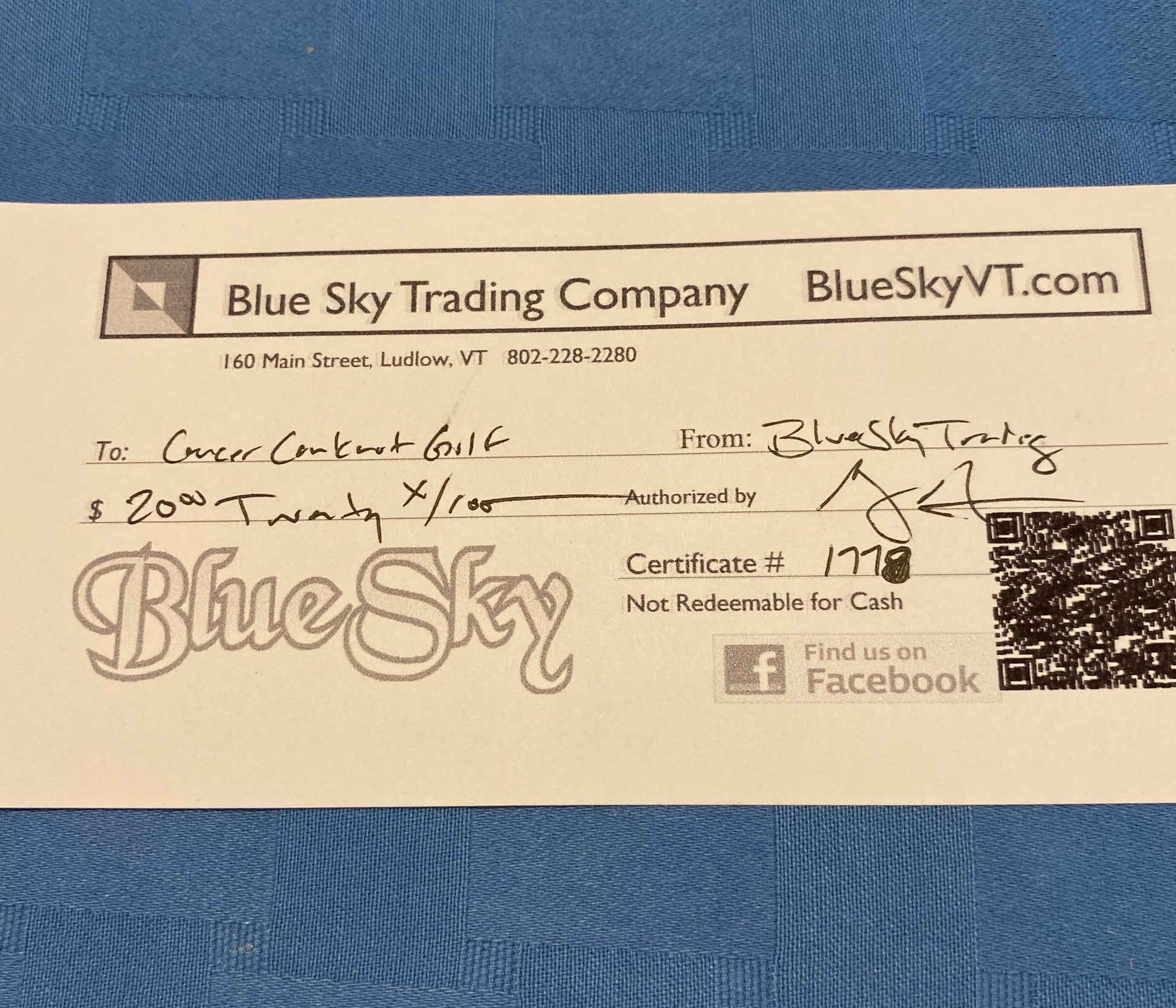 (#29) Blue Sky Gift Certificate - $20
