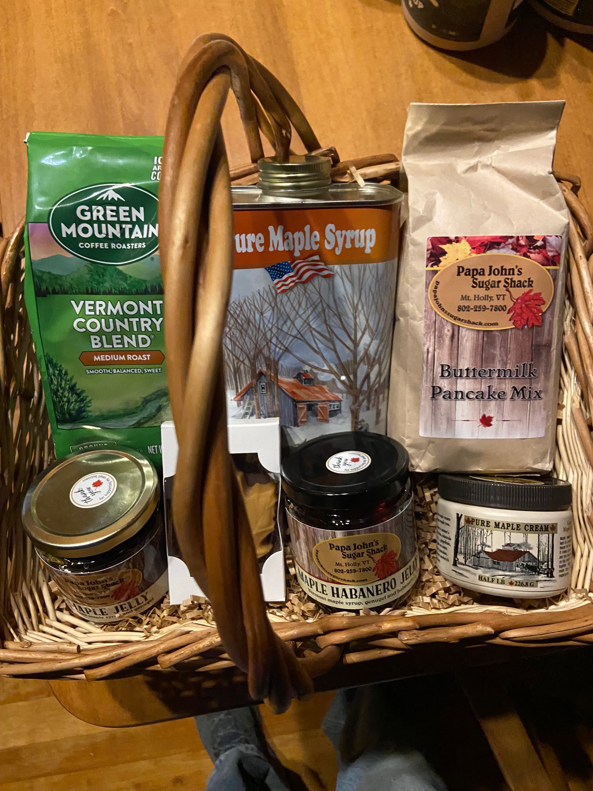 Half Gallon of Maple Syrup, Maple Cream, Maple Jelly, Maple Habanero Jelly, Maple Sugar Leaf Bar, Buttermilk Pancake Mix and Green Mountain Vermont Country Blend Coffee